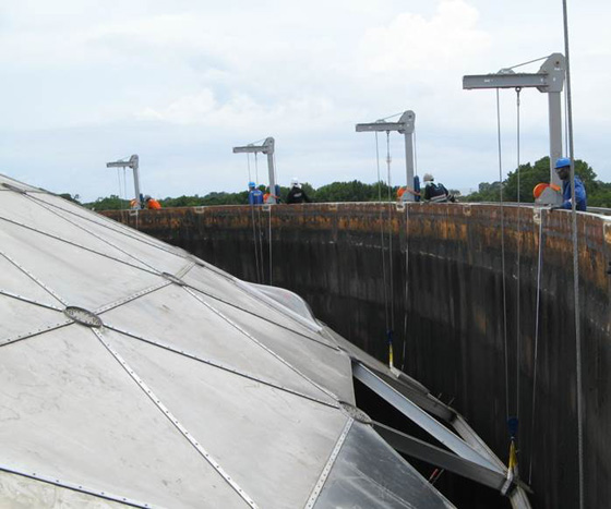 The team began by using Dillon EDjunior load cells to test all of the tirfors – manual hoists with wire rope which are used to lift, pull and position heavy loads. Next, the davits located around the rim of the gas tank were tested, using EDXtreme load links to test the safety of the lifting equipment which would be used to hoist the roof into place.